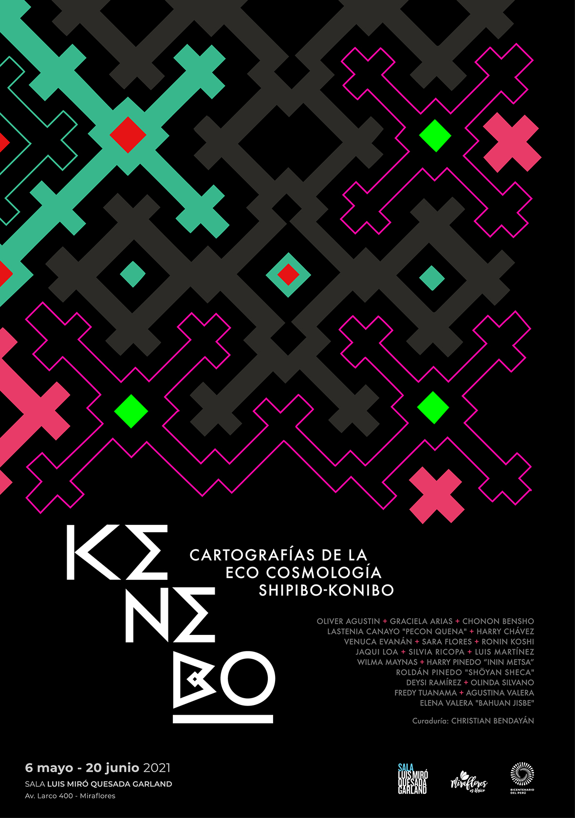 Artistas: Oliver Agustín + Graciela Arias + Chonon Bensho + Lastenia Canayo + Harry Chávez + Venuca Evanán + Sara Flores + Ronin Koshi + Jaqui Loa + Silvia Ricopa + Luis Martínez + Wilma Maynas + Harry Pinedo + Roldán Pinedo + Deysi Ramírez + Olinda Silvano + Robert Rengifo + Fredy Tuanama + Agustina Valera + Elena Valera